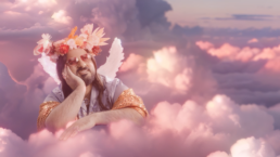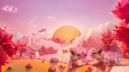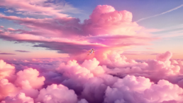The main character was filmed in front of a greenscreen, while the entire environment – including the sky and clouds – was generated using AI tools. The clouds and skies were first created in Midjourney and then animated and enhanced with Runway, resulting in a seamless fusion of design, animation, and AI-driven creativity within the motion design process.